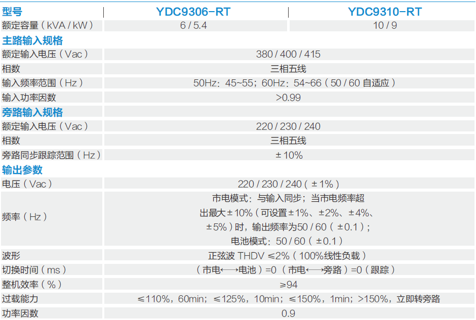 工作方式:高頻雙變換在線式;功率范圍:6kVA~10kVA