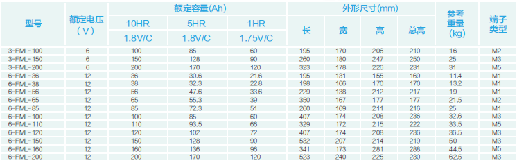 在20℃環(huán)境下,F(xiàn)M系列小型密封電池浮充壽命可達(dá)3~5年,F(xiàn)M固定型密封電池浮充壽命可達(dá)8~10年,F(xiàn)ML系列電池浮充壽命可達(dá)10年,F(xiàn)MH系列電池浮充壽命可達(dá)10年,GFM系列、太陽能深循環(huán)系列電池浮充壽命可達(dá)15年,GFMJ系列電池浮充壽命可達(dá)18年。